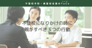 このプロセスが、子どもが不登校の状態から一歩を踏み出すための第一歩となるのです。
